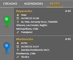 - Resto: Tareas asignadas, recibidas, en ruta, iniciadas y terminadas.