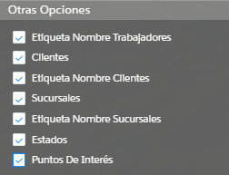 Permite activar diversa información a desplegar en el mapa: