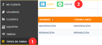 Paso 1: Ingresar a la Configuración del sistema. ir a Tipo de Tarea y presionar en la pestaña Crear.