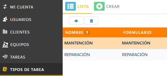 - Eliminar un tipo de tarea.
