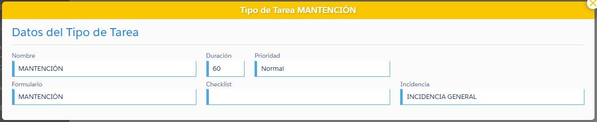 En la lista de Tipos de Tarea usted podrá: