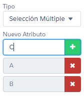 - Selección múltiple: Permite seleccionar varias opciones de las ingresadas. (Se deben digitar las opciones que verá el trabajador). Presionar el símbolo (+) para agregar la opción y el símbolo (x) para eliminarla.