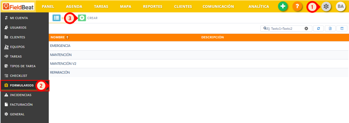 Paso 1: En la configuración ir a la sección de formularios y presionar en el botón crear.