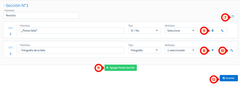 - Botón para copiar sección: activar en caso de necesitar que se pueda duplicar una sección completa al ejecutar la tarea.