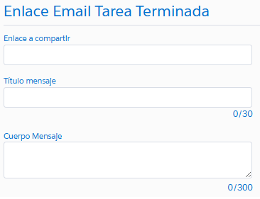 NOTA: Debe ingresar información en los tres recuadros para que se habilite en el correo de tarea terminada. De otro modo, no aparecerá el enlace en el correo.