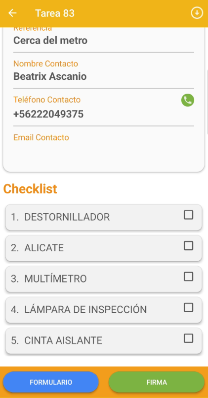 La lista de pasos aparecerá antes de iniciar una tarea: