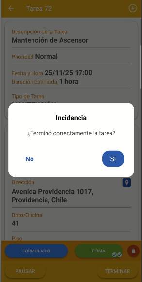 Terminar una tarea con Incidencia