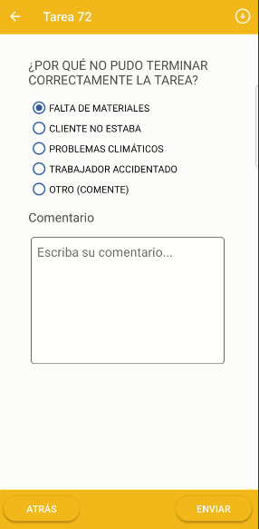 - Si la tarea presentó algún problema que debe ser atendido posteriormente, presione NO.