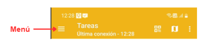 La aplicación móvil cuenta con una serie de opciones en el menú. Para ingresar al menú presione el botón superior izquierdo: