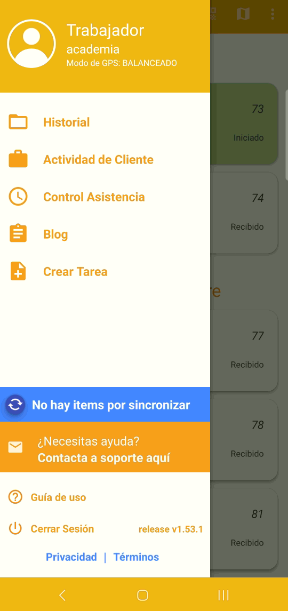 Al cerrar la sesión, la aplicación móvil se desconecta del sistema y dejará de transmitir información.