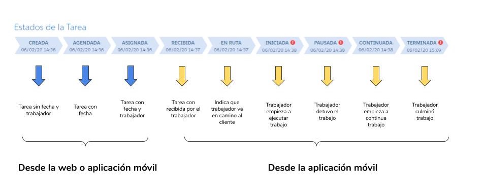 Dentro del flujo de una tarea, existen distintos estados asociados a cada una de las acciones que se realizan sobre una tarea.