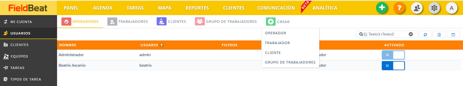 Nuestra plataforma permite generar grupos de trabajadores que pueden ser asignados a operadores, de manera que los usuarios operadores sólo puedan ver la información generada por los trabajadores del grupo asignado.
