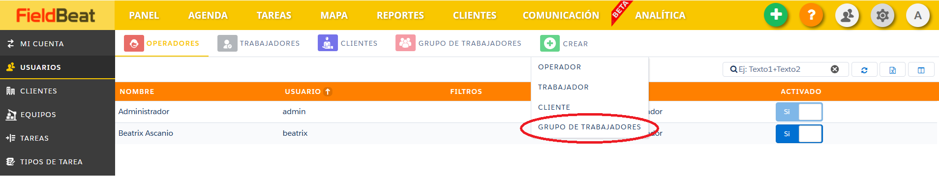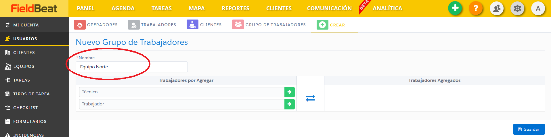 CREAR UN GRUPO DE TRABAJADORES