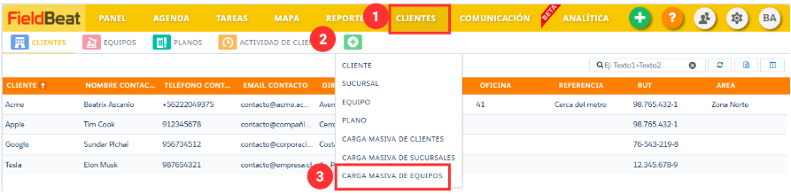2. Seleccione el Cliente al que se agregarán los equipos.