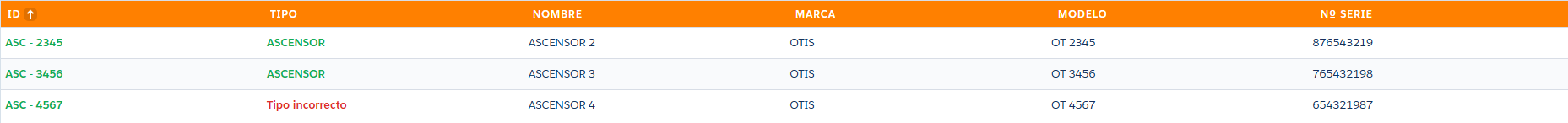 En la tabla estará resaltado en color rojo los registros con error.