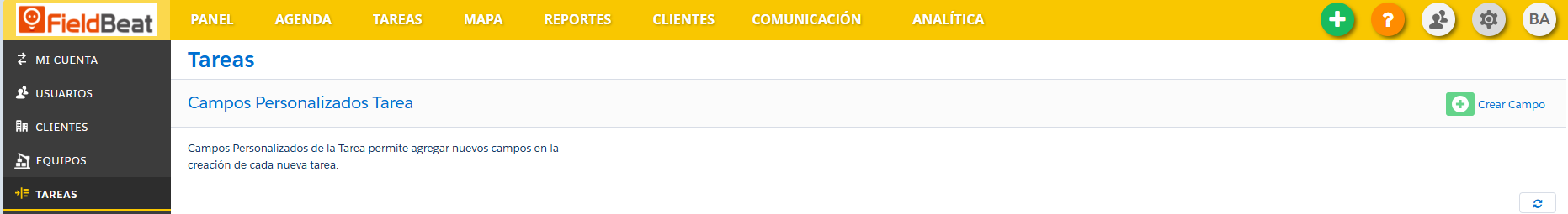 Paso 1: ir a la Configuración, en la sección de Tareas, hacer click en el símbolo de (+) Crear campo.