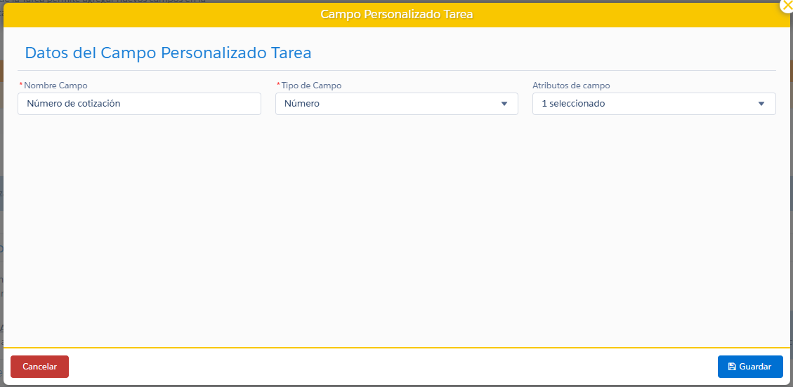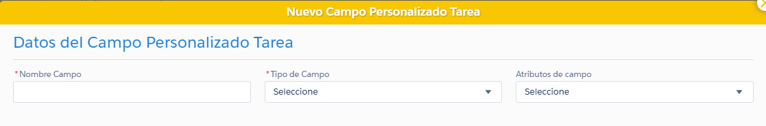 En esta sección se crean los campos adicionales que se agregarán a una tarea.