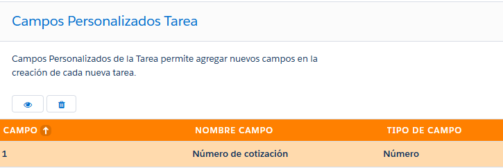 Paso 1: Ingresar a Campos Personalizados Tarea donde se despliega la lista de campos creados.