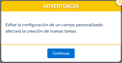 Importante: Los cambios realizados se llevarán a cabo sobre los nuevos clientes/sucursales o las tareas pendientes de ejecutar que sean editadas posterior al cambio de los campos personalizados.