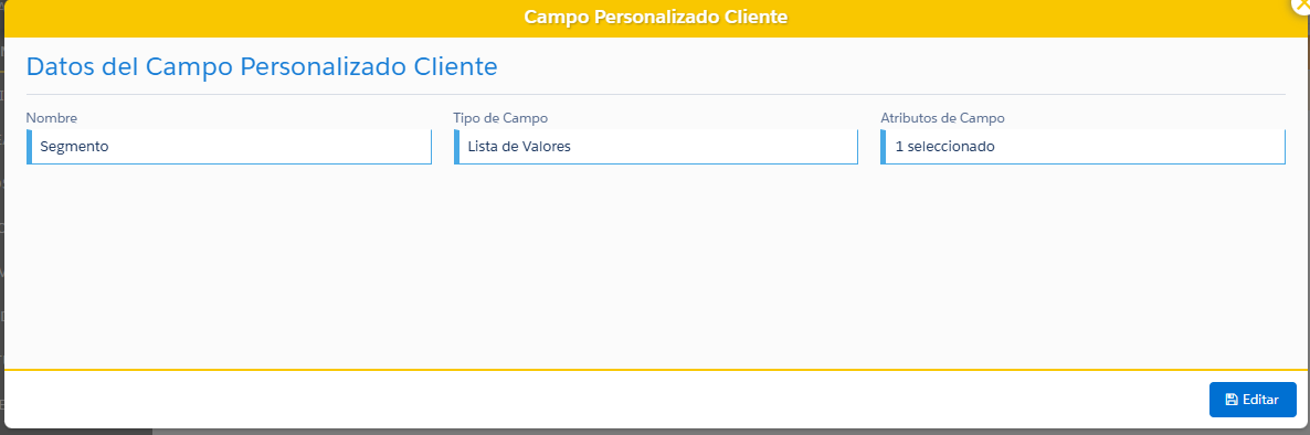 Para visualizar el detalle de un campo personalizado de cliente, se deben seguir los siguientes pasos:
