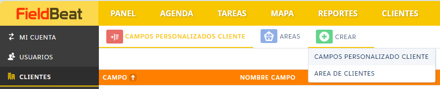 Nota: Al momento de crear una tarea, los atributos de los campos personalizados de cliente pasarán hacia ésta.