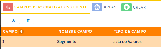 Paso 1: Ingresar a Campos Personalizados Cliente donde se despliega la lista de campos creados.