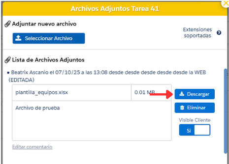Para descargar un archivo adjunto el usuario debe seguir los siguientes pasos: