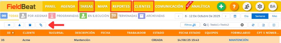 El acceso directo a la funcionalidad de adjunto estará disponible en todas las tablas con tareas: