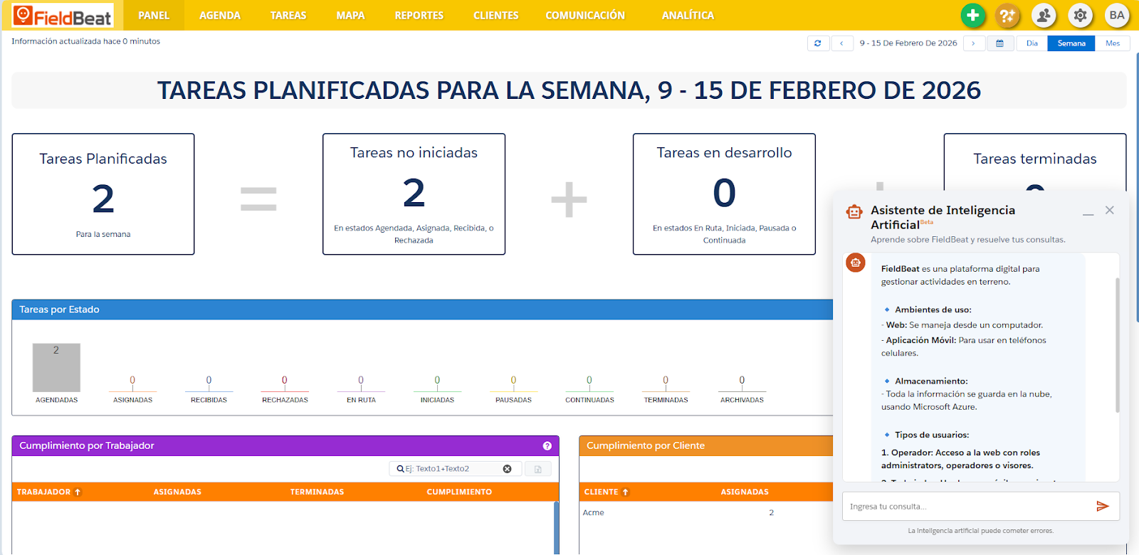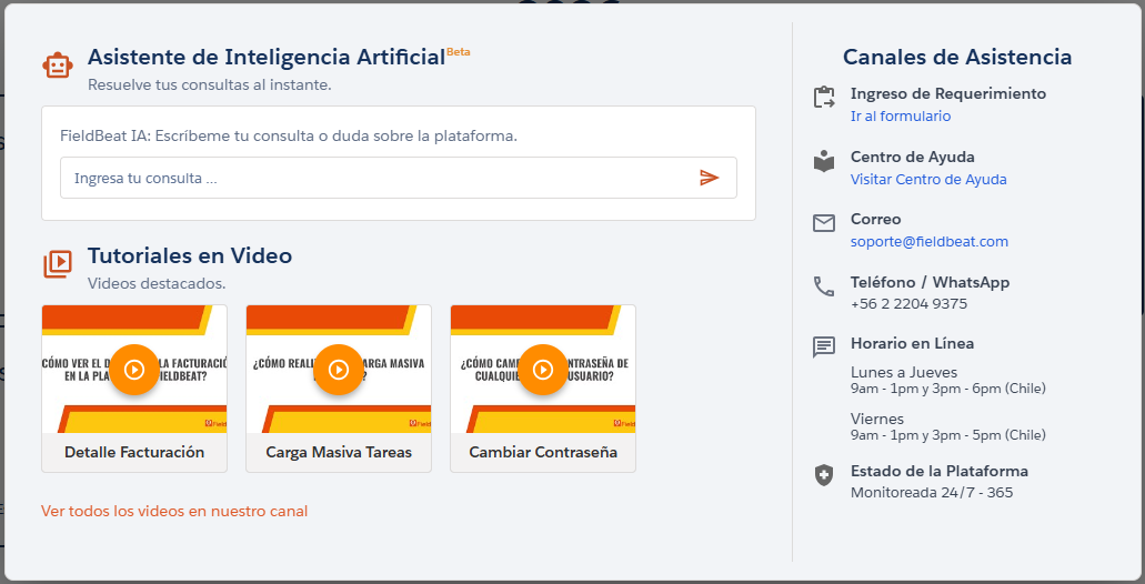 Si presionas la "X" o cierras tu sesión en Fieldbeat, la conversación se cerrará y los datos actuales en pantalla se limpiarán por seguridad y privacidad.