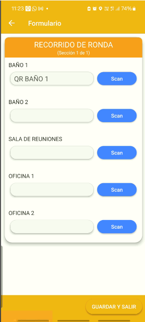 Cuando el trabajador llegue al punto del formulario donde debe escanear el código, el comportamiento será el siguiente: